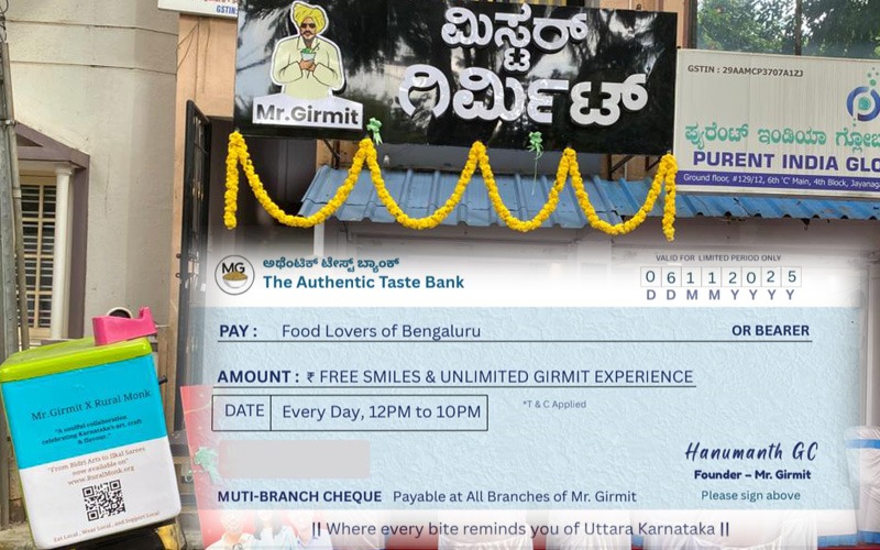 ಈಗ ಜಯನಗರದಲ್ಲಿ ಮಿಸ್ಟ್ರ್ ಗಿರ್ಮಿಟ್ ಹೊಸ ಶಾಖೆ ತೆರೆಯುತ್ತಿರುವ ಹನುಮಂತ್, ಅದಕ್ಕೂ ನೀಡಿದ ಆಮಂತ್ರಣವೇ ಸಾಮಾಜಿಕ ಜಾಲತಾಣಗಳಲ್ಲಿ ವೈರಲ್ ಆಗಿದೆ. ಬ್ಯಾಂಕ್ ಚೆಕ್ ಮಾದರಿಯಲ್ಲಿ ವಿನ್ಯಾಸ ಮಾಡಿದ ಆಮಂತ್ರಣದಲ್ಲಿ “Free Smiles & Unlimited Girmit Experience” ಎಂದ ಸಂದೇಶ, ಗ್ರಾಹಕರಲ್ಲಿ ಕುತೂಹಲ ಜಾಗೃತಿಸಿದೆ. ‘ಅಥೆಂಟಿಕ್ ಟೇಸ್ಟ್ ಬ್ಯಾಂಕ್’ ಹೆಸರಿನ ಈ ಕ್ರಿಯೇಟಿವ್ ಆಮಂತ್ರಣವನ್ನು ನೆಟ್ಟಿಗರು ಹರ್ಷದಿಂದ ಸ್ವೀಕರಿಸುತ್ತಿದ್ದು, ಹೊಸ ಆಲೋಚನೆಗೆ ಪ್ರಶಂಸೆ ವ್ಯಕ್ತಪಡಿಸಿದ್ದಾರೆ.